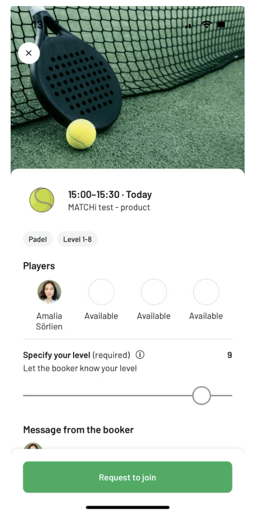 If you are missing players for a match, you can now make that booking public so other players in MATCHi can discover it. You set a level range for the match, and others can request to join you by providing their level. As the booker, you have full control over who is accepted or declined for your match. This will help you fill your matches with players on the same level and hopefully let you to play more.