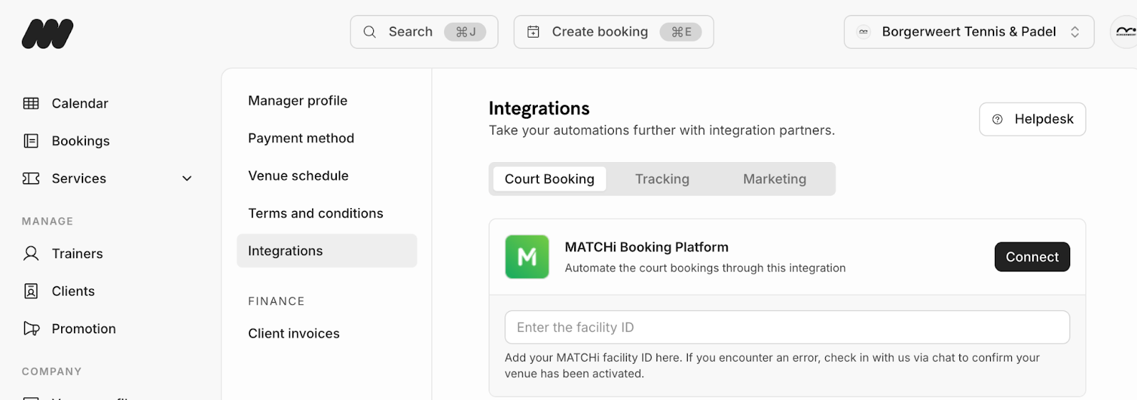 Integrating Matchable with your MATCHi account is a quick and seamless process that allows your venue to streamline lesson bookings, automate court reservations, and reduce admin work.