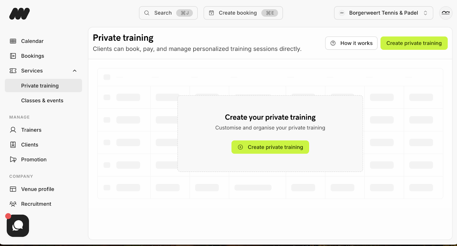 Private trainings are a great way to grow your coaching revenue and offer a premium, flexible experience to your players. Through our integration with Matchable, you can easily set up and manage personalised training sessions, while MATCHi takes care of court reservations behind the scenes.