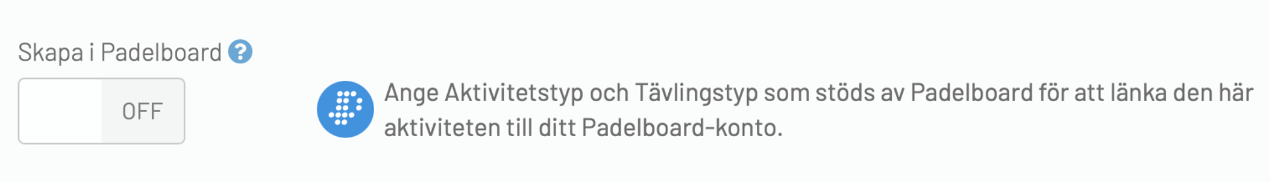 Säkerställ att “Skapa i Padelboard” är ibockat innan aktiviteten sparas.