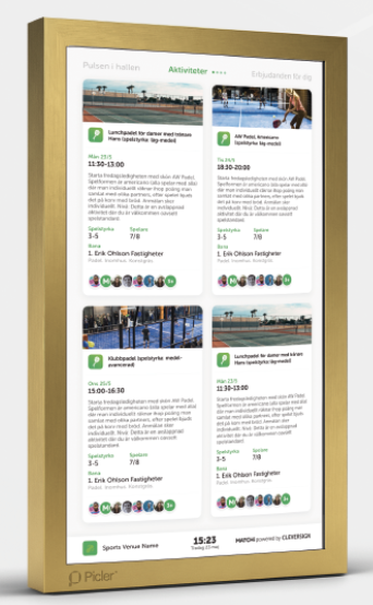 Detta är vårt digital signage-erbjudande som ni anläggningar kan använda för att marknadsföra aktiviteter på er anläggning, sälja annonser, visa vem som spelar var via MATCHi Dashboard med mera.
